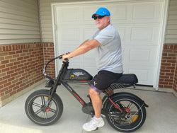 Tanner H. Feedback: This bike has been a game changer for me! I’ve started commuting to work with it, about 35 miles round trip. It’s a fairly flat ride, but I can do it all on one charge with pedal assist. I’ve also been cruising around with my kids with me. The seat is big enough to fit me and my partner, or me and two of our smaller kids.Plus it looks awRead more about review stating Super fun bike and awesome battery life!esome, I’ve gotten so many compliments just on the aesthetic of the bike!The battery (upgraded one) is solid. Not sure it would actually ever reach its advertised 80 miles, unless you were going downhill for the entire time haha, but with pedal assist I get around 45-50 miles on a single charge, and pure throttle is probably about 35 miles.The speeds are awesome, I’ve hit around 32 mph with pedal assist on a flat straightaway and about 27 mph on pure throttle on a flat straightaway.All around, I’ve put about 150 miles on this just in the first two weeks and have really loved it. I’ve recommended this bike to a few friends already, and can’t wait to see G-Force take off! In my opinion, this is one of the best bangs for your buck in the fatty tire e-bike world!
